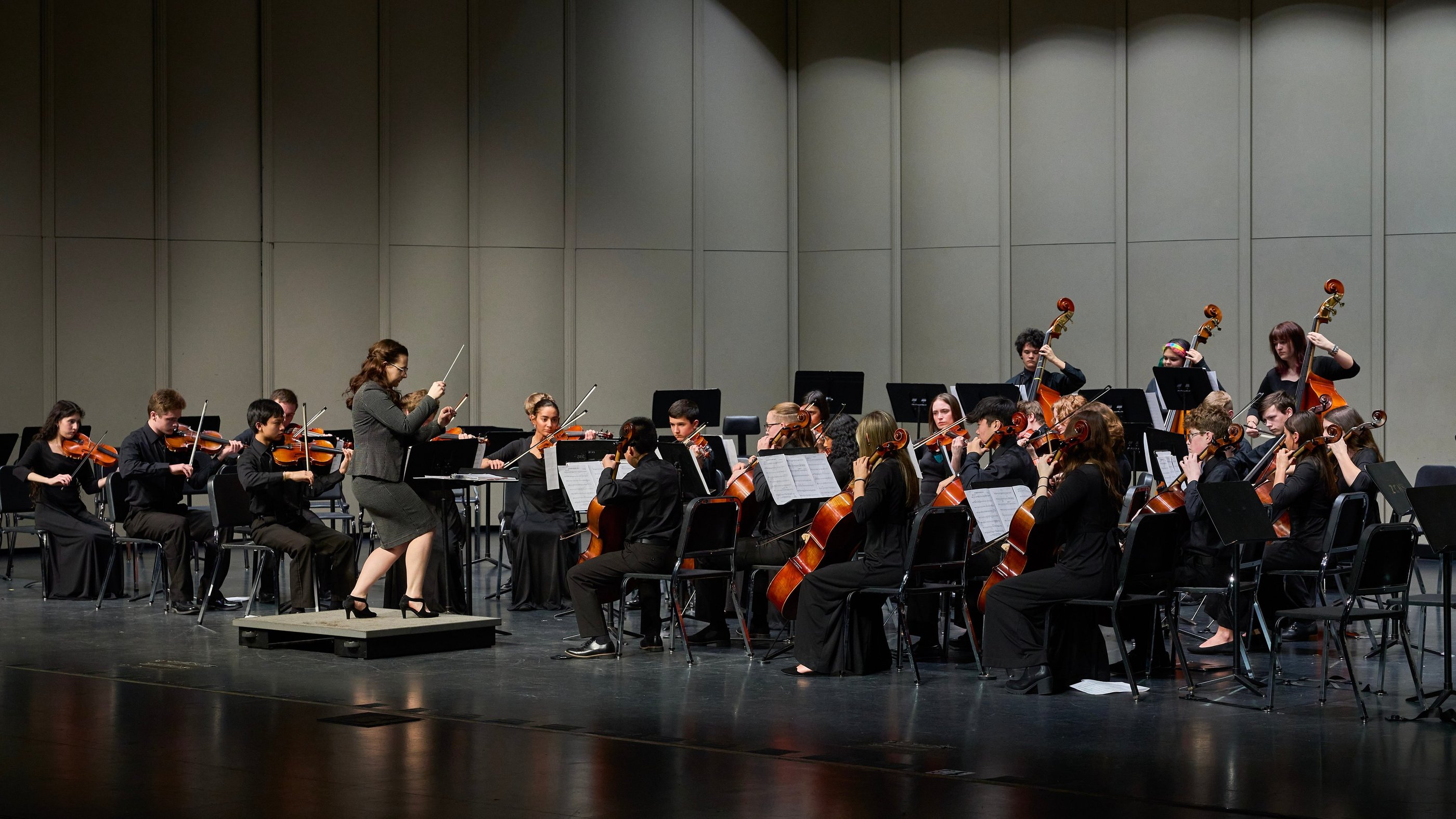 (Honors) Philharmonic Orchestra is composed of 9th-12th grade students who demonstrate above average levels of musicianship in their audition.